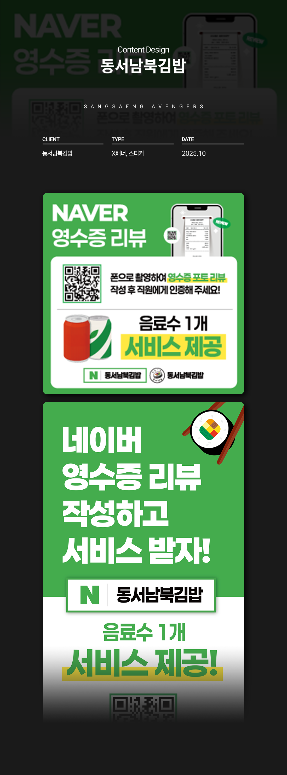 동서남북김밥의 X배너, 테이블 스티커를 디자인하였습니다.