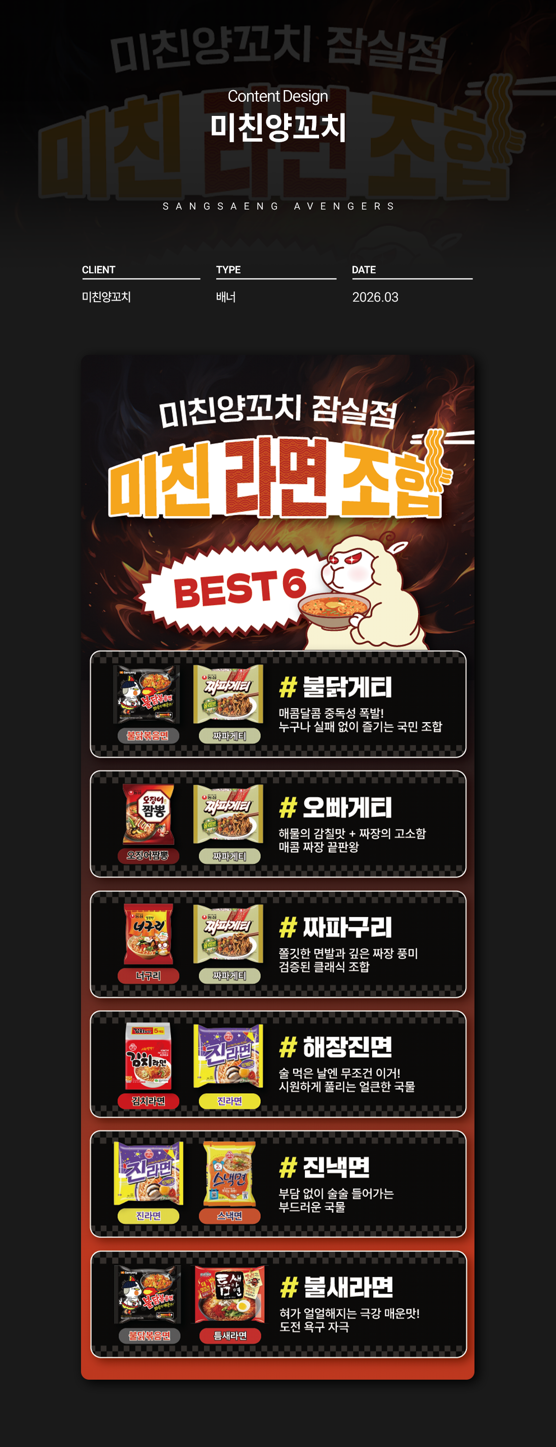 미친양꼬치의 매장 라면 배너를 디자인하였습니다.