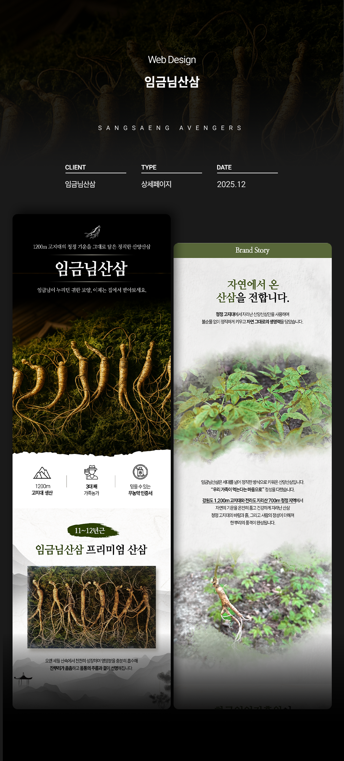 임금님이 누리던 귀한 산삼인 임금님산삼 상세페이지를 디자인하였습니다.